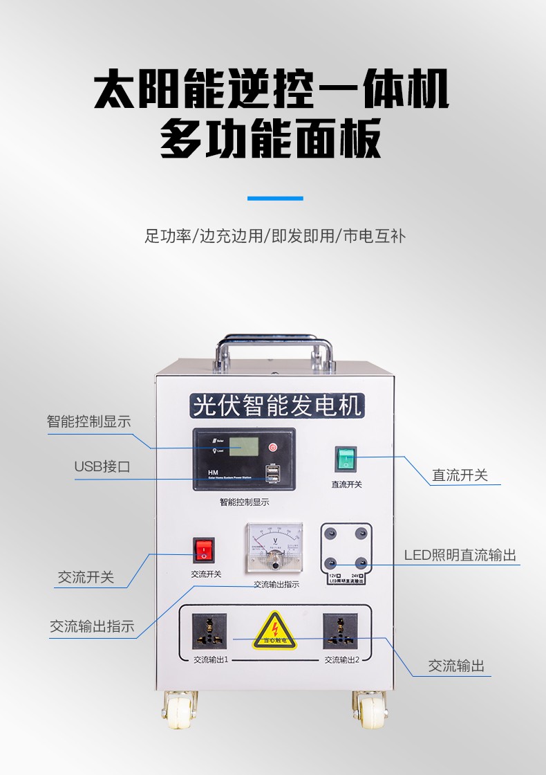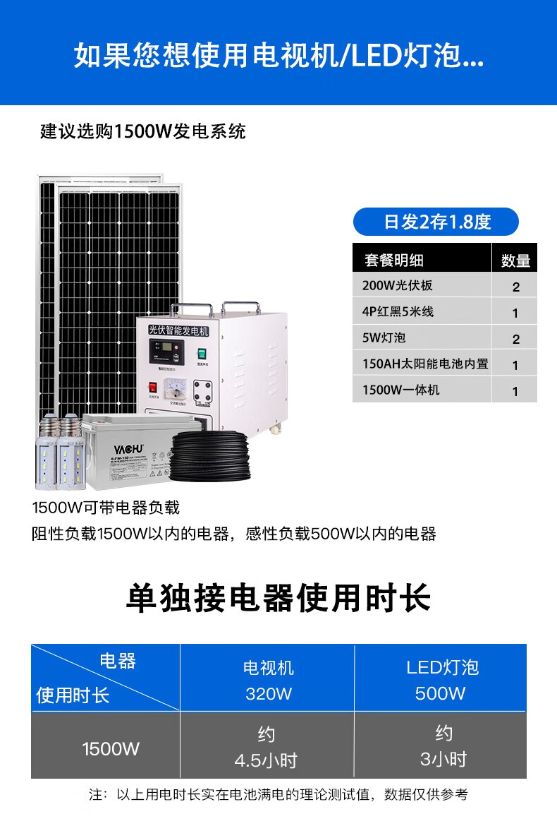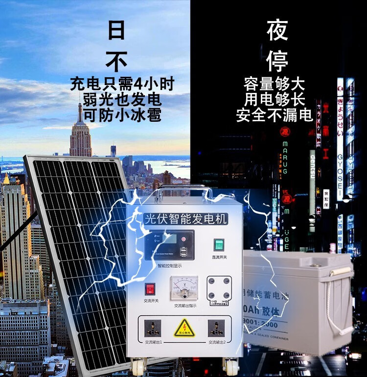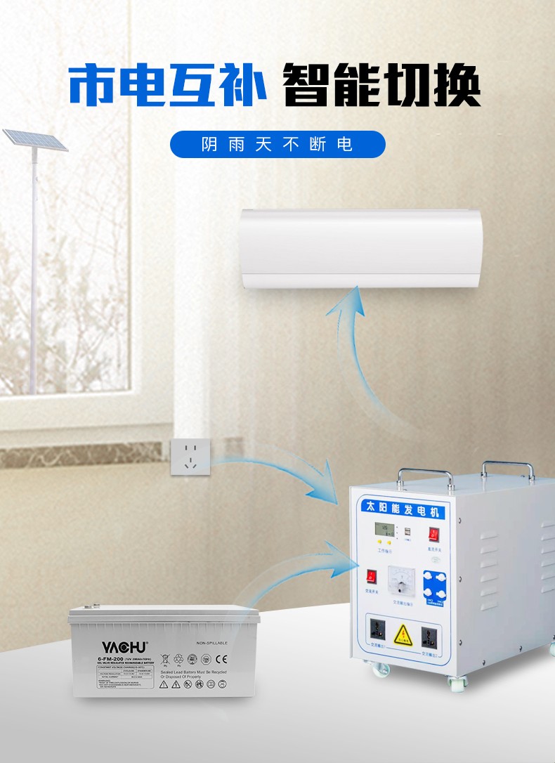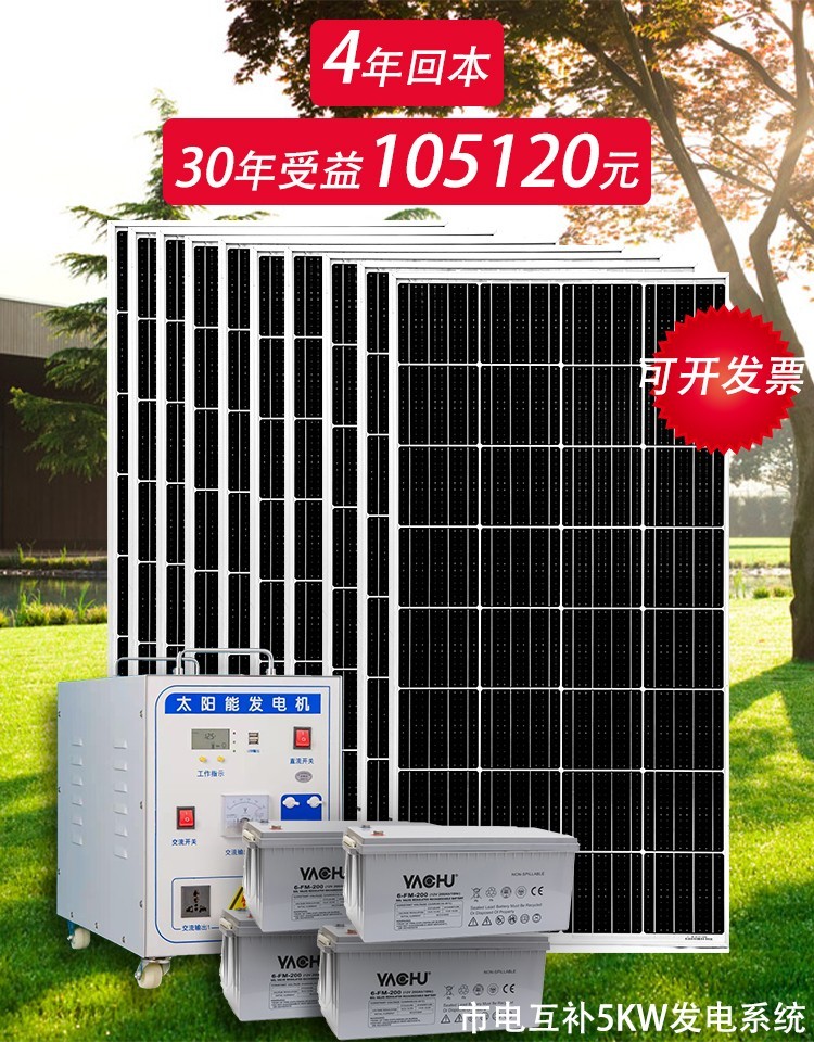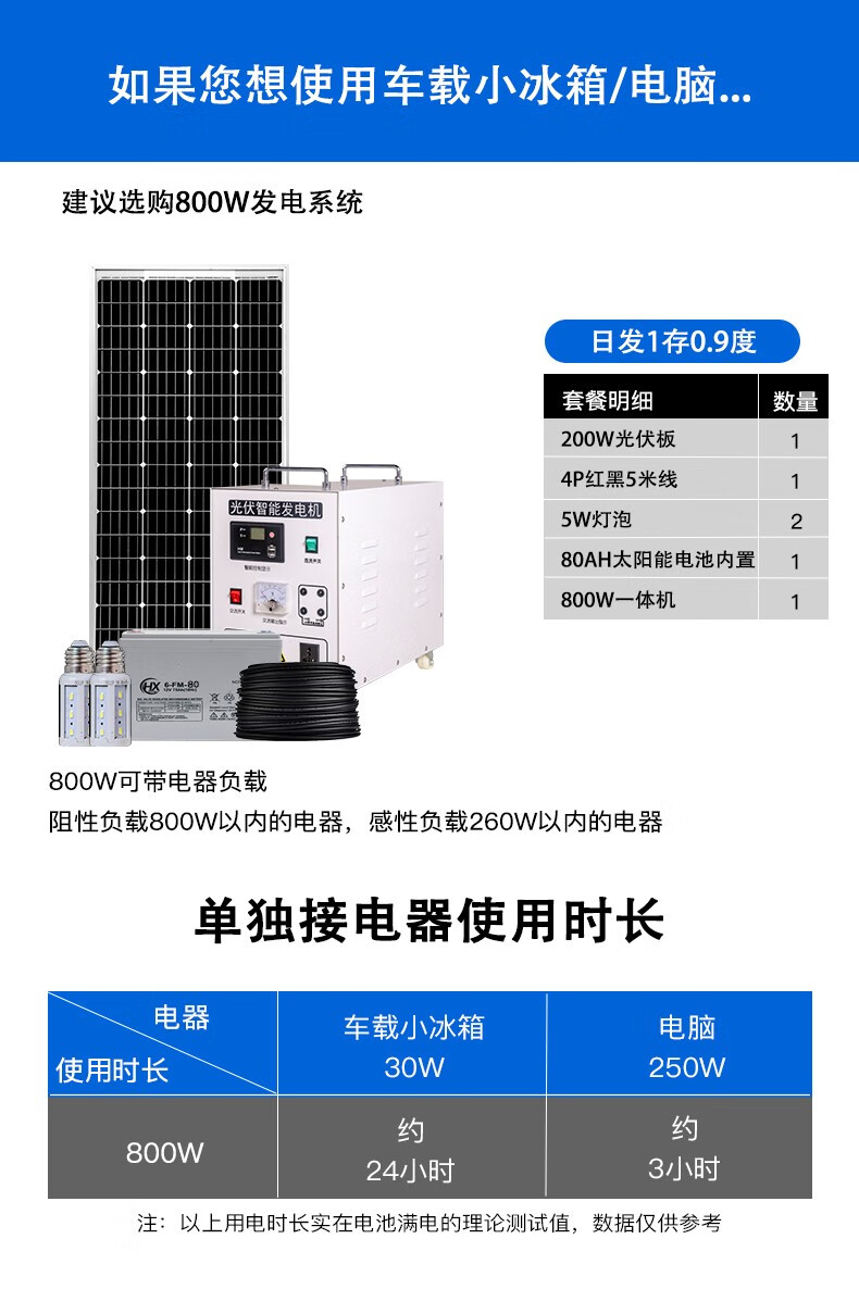 猎钢狼太阳能发电系统家用全套10KW小型220V设备光伏离网逆控一体机 800W标配太阳能板+蓄电池+控制器