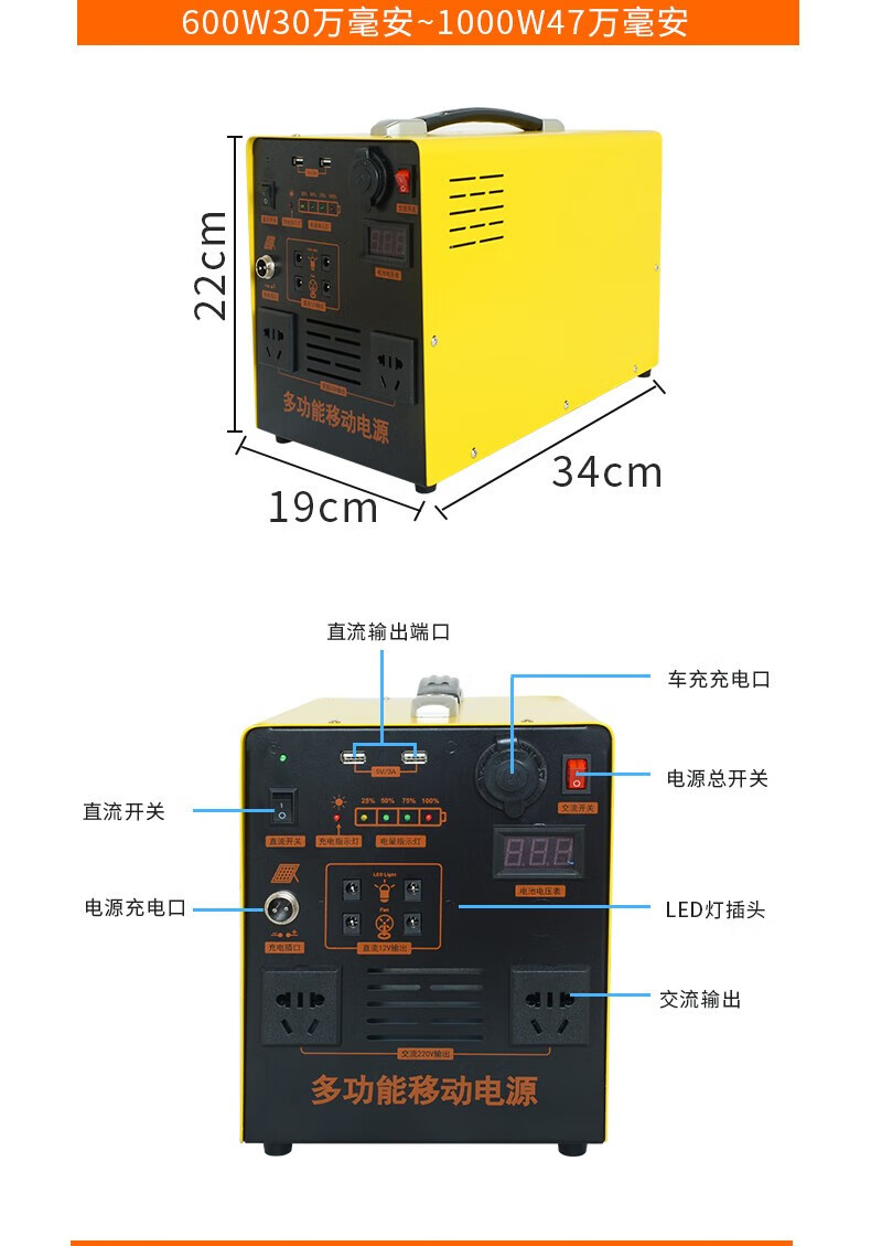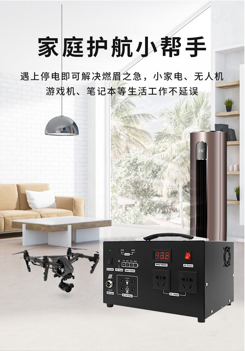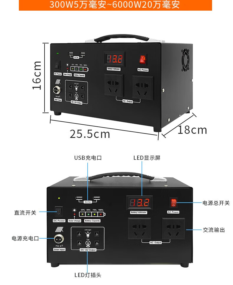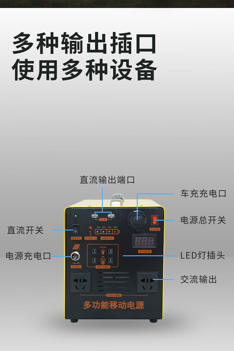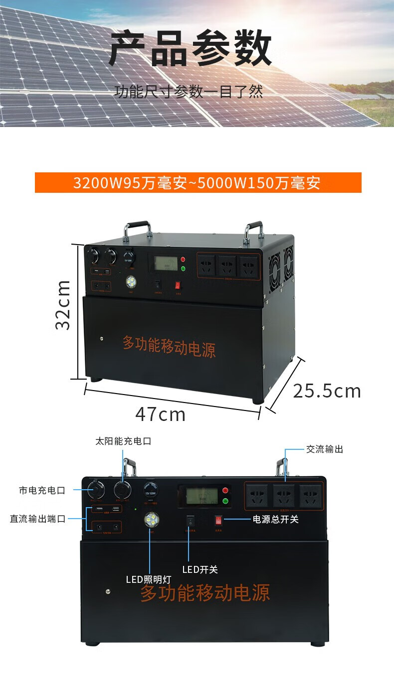 猎钢狼太阳能发电系统全套家用220v光伏发电户外充电锂电池移动电源设备 300瓦功率/8万2毫安/存电0.5度池