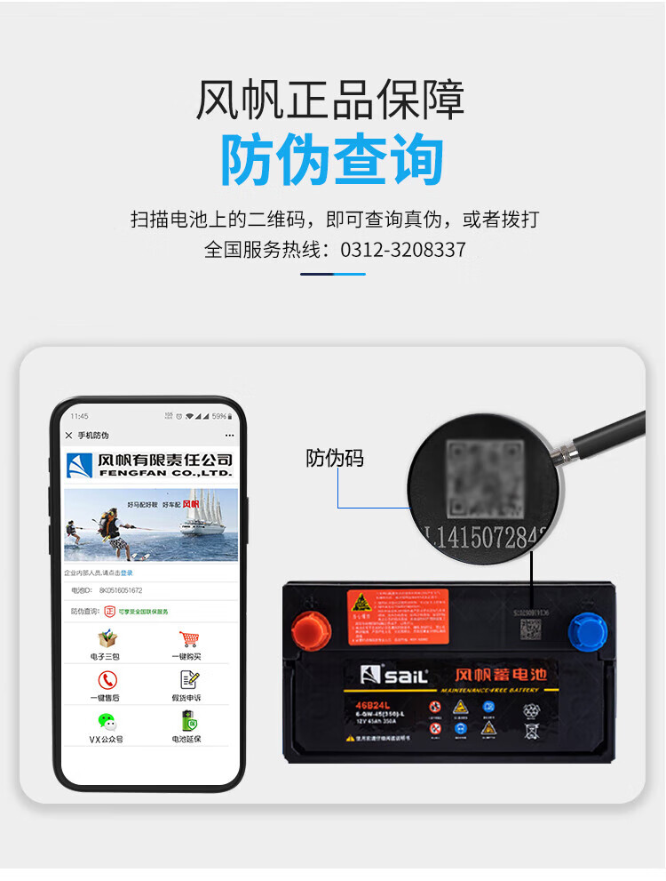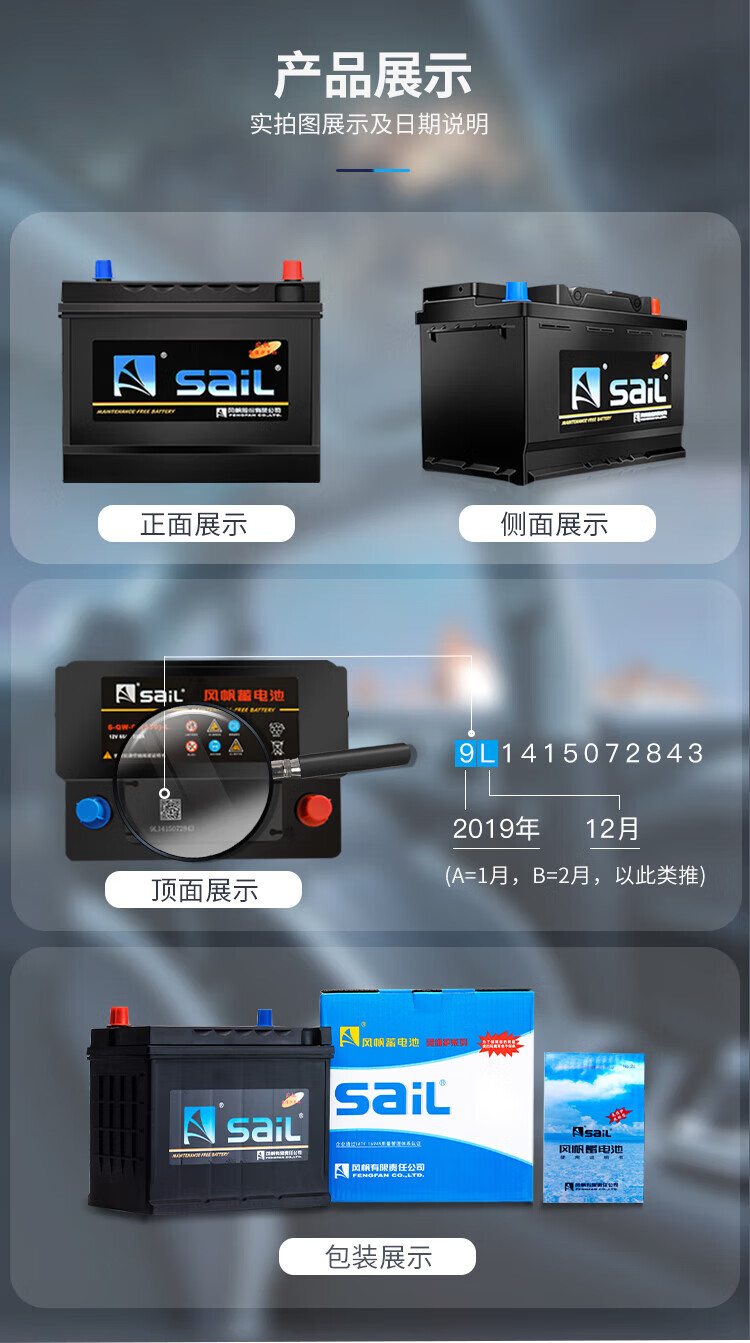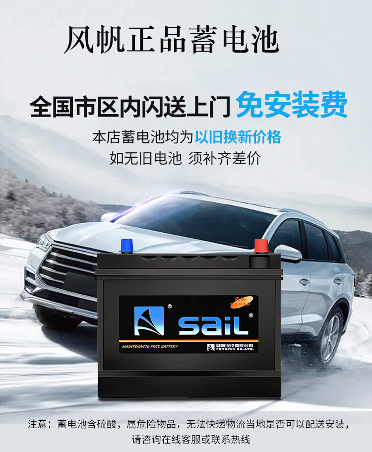 风帆(sail)蓄电池46B24L/R(6QW45)全免维护12V45AH汽车电瓶 雅阁八代2.0现代瑞纳